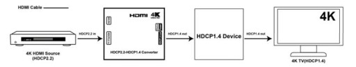 - Jeśli będziemy chcieli podać sygnał HDMI z HDCP 2.2 lub HDCP 1.4 na urządzenia przechwytujące sygnał HDMI.