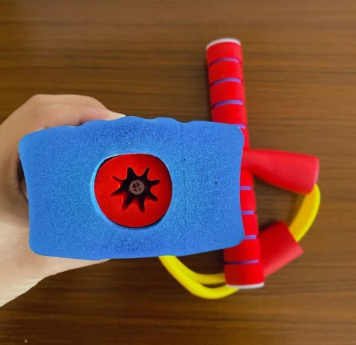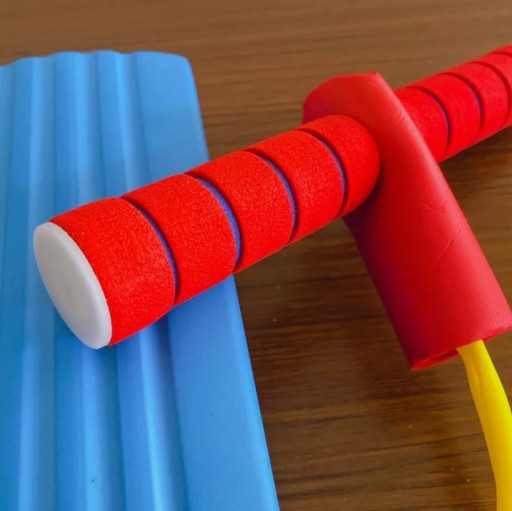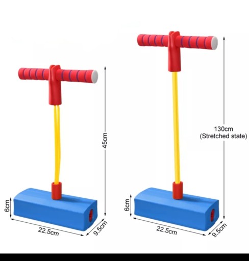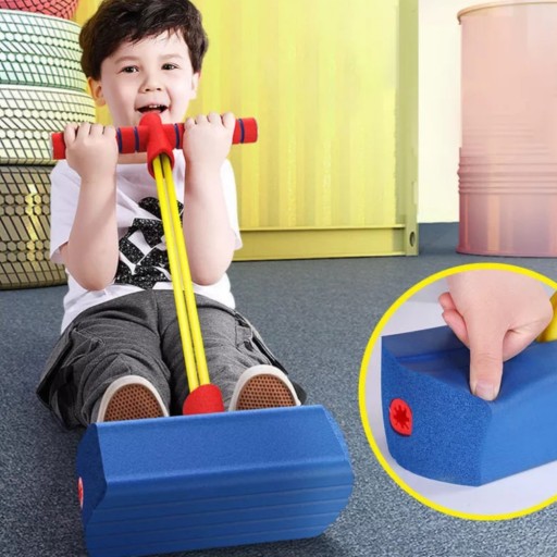 Skoczek pogo wykonany jest z pianki. Podczas skakania wydaje dźwięk, a boki w uchwytach się świecą. Skoczek doskonale sprawdzi się do ćwiczeń równowagi oraz koordynacji u dziecka. Jest bardzo lekki oraz zachęca do zabawy wewnątrz pomieszczeń jak i na świeżym powietrzu.