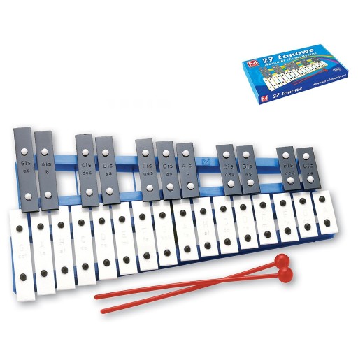 Dzwonki 27-tonowe to instrument, dzięki któremu dziecko poznaje nuty oraz uczy się grać proste melodie przy wykorzystaniu dwóch pałeczek, z pomocą rodzica lub nauczyciela.