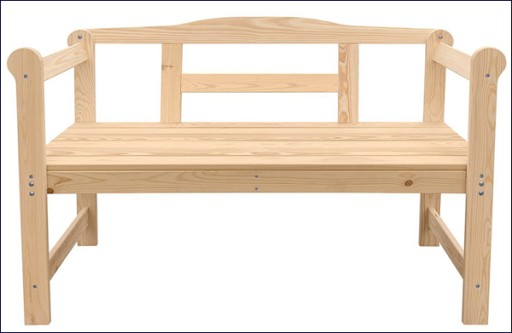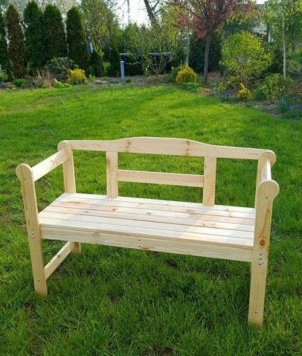 - Wymiary ławki: szerokość całkowita: 118 cm, wysokość całkowita: 73,5 cm, głębokość całkowita: 43,6 cm, głębokość siedziska: 38 cm, wysokość siedziska: 43 cm, wysokość oparcia: 35 cm, grubość desek: 18 mm.