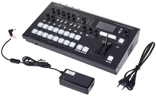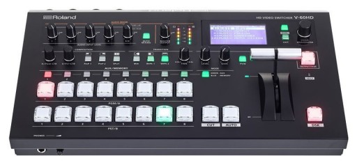 Roland V-60HD w sekcji audio pracującej w standardzie 24-bit/48 kHz obsługuje do 12 kanałów – 4 analogowe mono na złączach combo XLR/jack 1/4”, analogowe stereo na 2 x cinch oraz 6 cyfrowych stereo, cztery na SDI, dwa na HDMI. Analogowe wejścia na gniazdach XLR akceptują sygnały o poziomach liniowych i mikrofonowych i mogą podać Phantom +48V. Sygnały można przetwarzać za pomocą filtru górnoprzepustowego HPF, 3-pasmowego parametrycznego korektora EQ, kompresora, linii opóźniającej, limitera, jak również na sumie wielopasmowego kompresora masteringowego! Dodatkową funkcją jest AutoMixer dla 4 wejść w trybie mikrofonowym. Ciekawostką jest również możliwość wypuszczenia na SDI do 8 kanałów audio, co sprawdzi się choćby w przypadku symultanicznych tłumaczeń w różnych językach wysyłanych razem z obrazem do rejestratora obrazu i dźwięku na SDI.