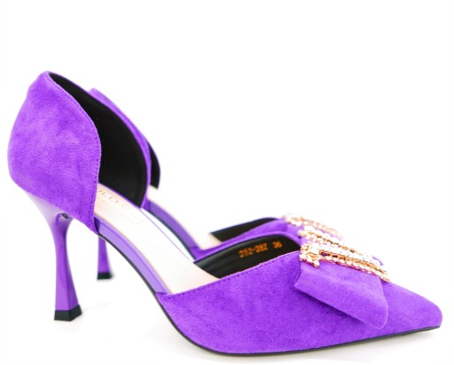 - Ocień sprzedawanego obuwia różni się od tego przedstawionego na zdjęciu. Jest to spowodowane dużym naświetleniem produktu podczas wykonywania zdjęcia. W rzeczywistości szpilki mają głęboki fioletowy kolor.