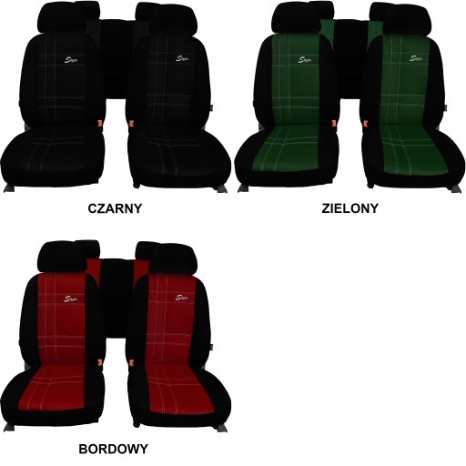 Oferta dotyczy modeli z fotelami standardowymi i kanapą z tyłu - pokrowce nie są przystosowane na fotele kubełkowe i fotele pojedyncze w drugim rzędzie.
