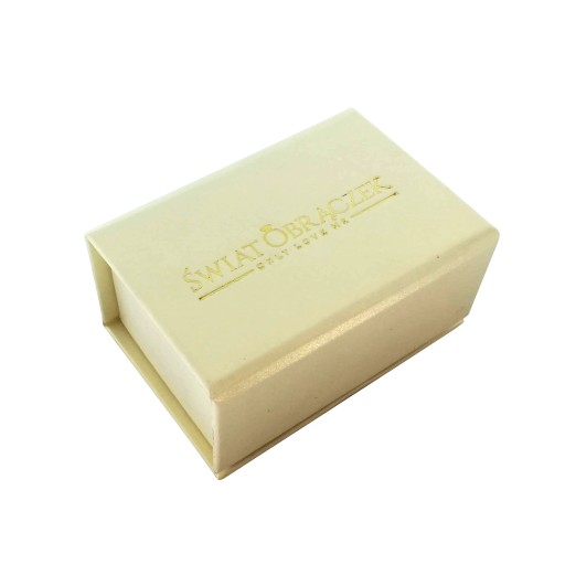 Obrączkę zapakujemy w eleganckie opakowanie zamykane wieczkiem z magnetycznym klipsem. Zewnętrzna strona wieczka sygnowana jest naszym logiem w kolorze złota, przepięknie mieniącym się w odbiciach światła. Wewnątrz pudełka znajduje się gąbeczka wykończona welurem.