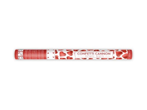 Tuba strzelająca metalizowanymi sercami w kolorze czerwonym, długość 60 centymetrów (cena dotyczy 1 sztuki).