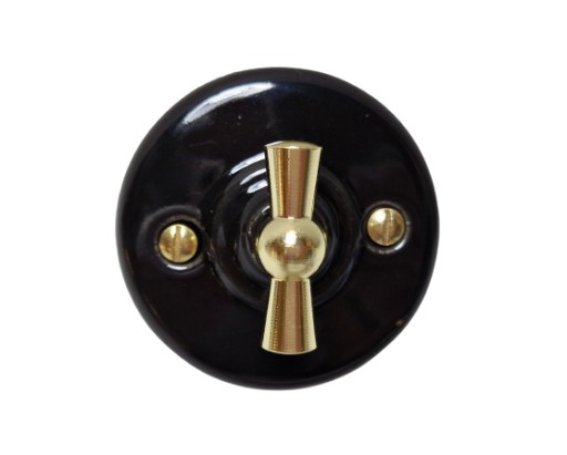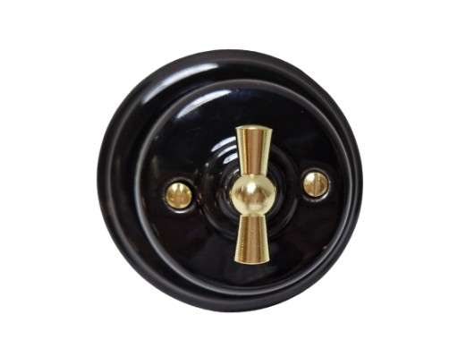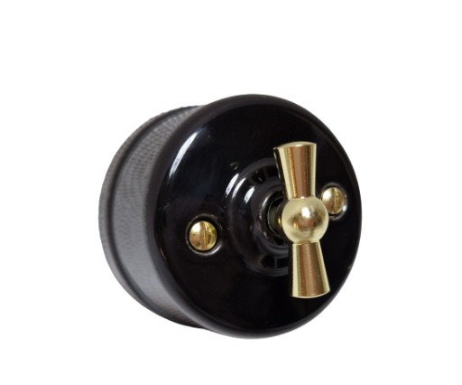 Ceramiczny włącznik jednobiegunowy pojedynczy/schodowy natynkowy w stylu retro vintage ze złotym przełącznikiem (bez ramki)