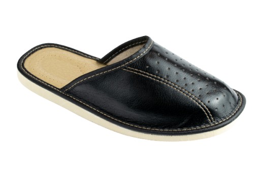 Pantofle wykonane są z wysokiej jakości skóry ekologicznej, łatwej w utrzymaniu w czystości.