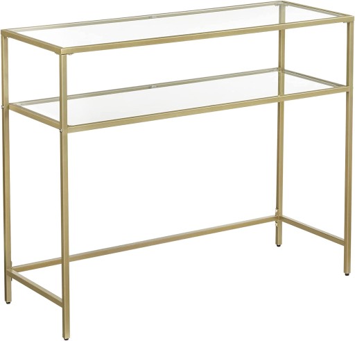 Dwupoziomowa konsola ze złotą ramą w stylu Art Deco, glamour.