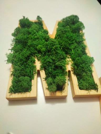 Przedstawiamy Państwu żywe litery z mchu CHROBOTEK umieszczonym w drewnianych literach 3D