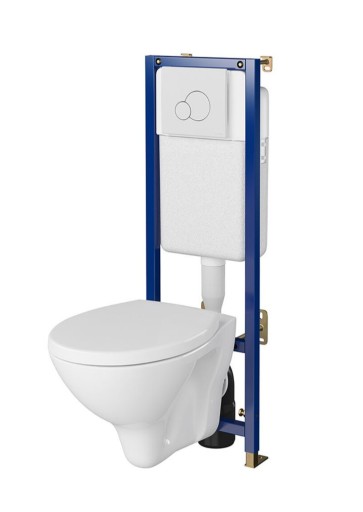 - W zestawie: stelaż, przycisk, miska, deska, rury przyłączeniowe, śruby montażowe