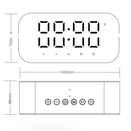 Wielofunkcyjny-ten budzik z głośnikiem Bluetooth, obsługuje kartę TF ( w zestawie) + port AUX + bezprzewodowy;