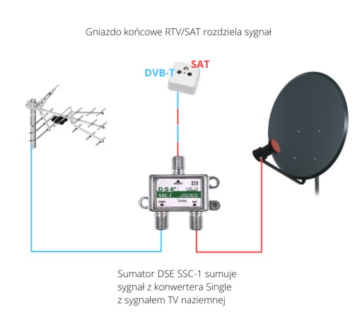 Sumator sygnału z konwertera Single z sygnałem TV naziemnej SSC-1