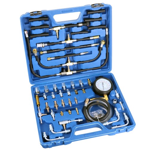 Zestaw przeznaczony do pomiaru ciśnienia paliwa w układach z wtryskiem benzyny. Próbnik nadaje się do większości typów układów wtryskowych w których przewidziano pomiar ciśnienia benzyny.