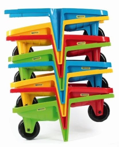 - solidna i trwała, wytrzymała konstrukcja o udźwigu do 100 kg gigantyczna taczka o dł. 77 cm