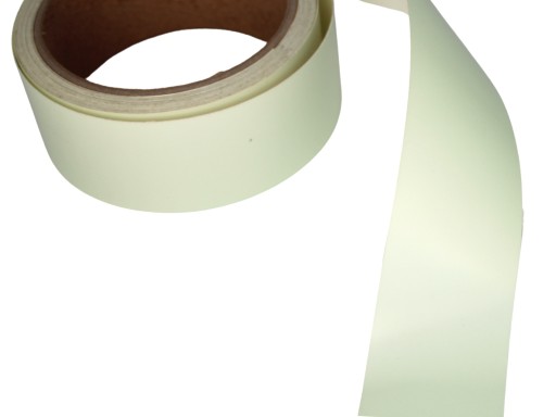 Jednostronnie klejąca taśma fotoluminescencyjna z folii PVC o żółto-zielonym pobłysku.