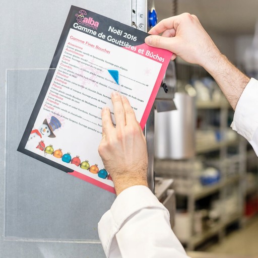 - Idealny do eksponowania informacji i dokumentów na szklanych ścianach i witrynach sklepowych (obustronnie przezroczyste).