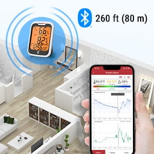 Bezprzewodowy monitor temperatury i wilgotności ThermoPro TP-358 wyposażony jest w zaawansowaną technologię bezprzewodową Bluetooth 5.0, która może przesyłać odczyty do aplikacji ThermoPro Sensor z odległości około 80 m, umożliwiając monitorowanie temperatury i wilgotności z innego zakątka domu, czy podwórka.