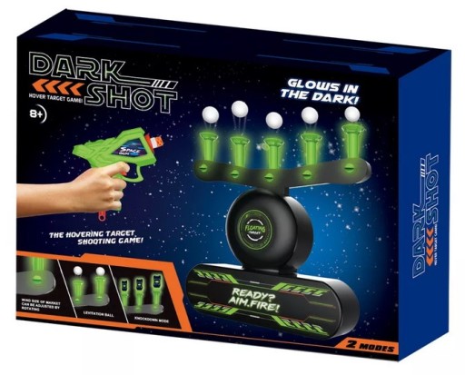 Latające cele unoszą się dzięki przepływowi powietrza, mają regulowaną siłę nadmuchu dzięki czemu mogą unosić się wyżej lub niżej. Zestaw jest fluororescencyjny, świeci się w ciemności. Dzięki efektem dźwiękowym zabaw sprawia więcej radości.