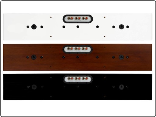 - Wyrównanie basów: bas-refleks umieszczony z przodu (sekcja centralna) z tyłu (sekcja prawa i lewa)