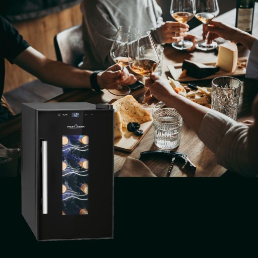 ProfiCook PC-WK 1232 to kompaktowa lodówka do wina która jest doskonałym wyborem dla każdego, kto chce w sposób efektowny przechowywać i chłodzić wino. Urządzenie działa w oparciu o technologię termoelektryki, bez użycia kompresora. Szklany, przezierny front z filtrem UV oraz podświetlenie wnętrza sprawia, że jest ona doskonałym uzupełnieniem eleganckiej kuchni, pokoju hotelowego czy baru.