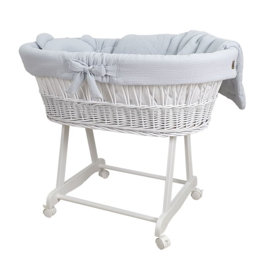 Корзина Моисей Плетеная БЕЛАЯ Муслин СЕРАЯ