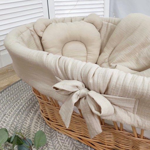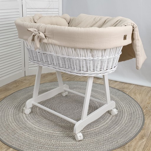 Корзина Моисей Плетеная БЕЛАЯ Муслин БЕЖЕВАЯ