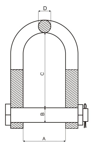 Szekla stalowa kuta, podłużna z zabezpieczeniem ze sworzniem typu śrubowego z łbem sześciokątnym oraz nakrętką sześciokątną z zawleczką - typ X, do podnoszenia ładunków (przedmiotów, materiałów i towarów), a także do zawiesi linowych stalowych wg EN 13414-1 oraz zawiesi włókiennych wg EN 1492-1, EN 1492-2.