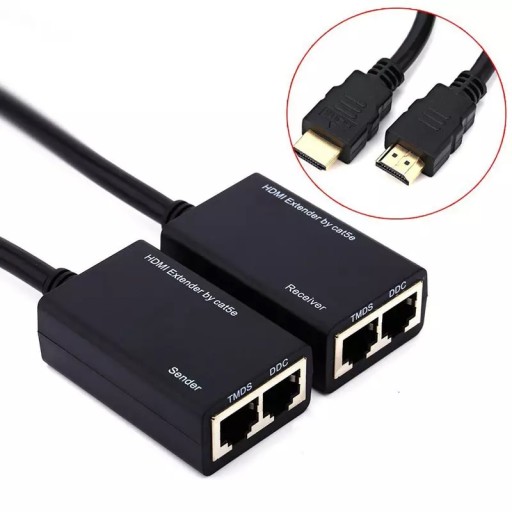 КАБЕЛЬ-ПРЕОБРАЗОВАТЕЛЬ HDMI-LAN С ИСПОЛЬЗОВАНИЕМ ВИТОЙ ПАРЫ RJ45, 30 М