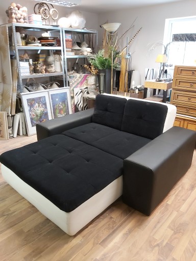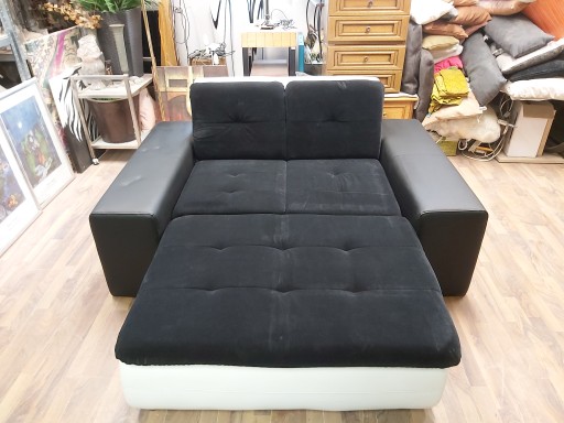 FOTEL SZEZLONG - WYPOCZYNKOWY dwu osobowy - siedzisko i oparcie gruba TKANINA - czarna , natomiast doły i podłokietniki eko-skóra czarna i biała - stan bardzo dobry , stolik i dywan za dopłatą z możliwością wyboru innego modelu . Możliwość oglądnięcia szezlongu na miejscu , pomoc w organizacji transportu . * 5 3 1 * 4 7 5 * 0 3 0 *