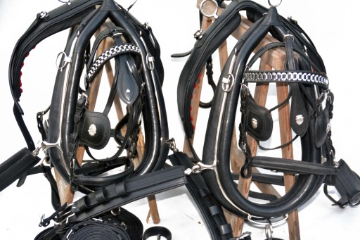 Uprząż chomątowa Angielska na parę koni roz.FULL . Uprząż wykona w całości bardzo dobrej selekcjonowanej skóry licowej ,bardzo miękkiej i miłej w dotyku ,we wszystkich elementach uprzęży wszyta taśma ,która ma zadanie wzmocnienie skóry.Profilowane piersi wyposażone w napierśniki ,popręgi anatomicznie profilowane ogłowia anatomiczne w części potylicznej i nachrapnik zrobiony na miękko Okucia wykonane ze stali nie rdzewnej .jedyna taka uprząż na rynku ,perfekcyjnie wykonanie.Polecam