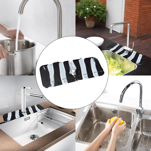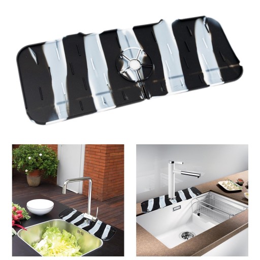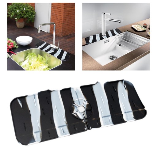 WERSJA ULEPSZENIA: Nasz zaprojektowany do osłony przeciwbryzgowej kranu jest lepszy niż inne rodzaje tkanin na Nasza silikonowa podkładka do kranów zaprojektowana z odprowadzaniem , dzięki czemu nigdy nie będziesz się martwić, że pozostanie na lub blacie