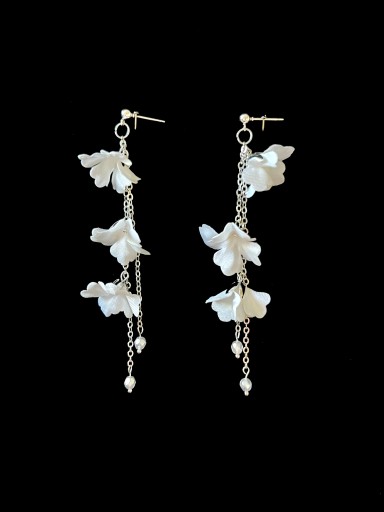 Delikatne kolczyki ślubne kwiaty. Wykonane na elementach w kolorze srebrnym.