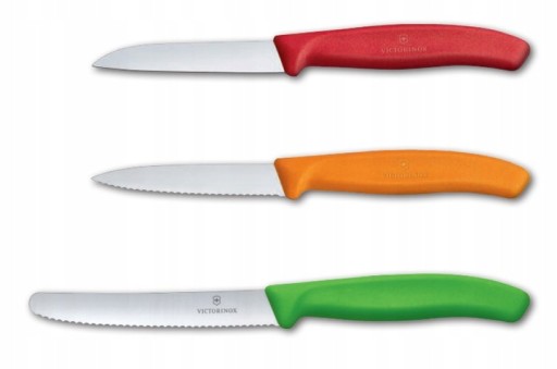 Zestaw złożony jest z trzech niezbędnych w każdej kuchni nożyków marki Victorinox z kolorowymi rączkami, które łatwo znajdziemy w szufladzie.