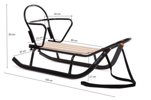 Sanki w zestawie z oparciem dokręcanym na śruby które są w komplecie. Wytrzymałość sanek - 150 KG
