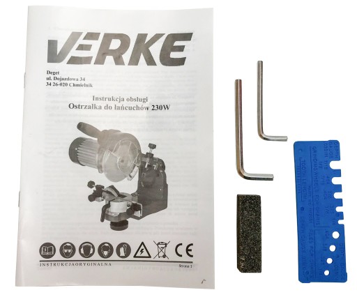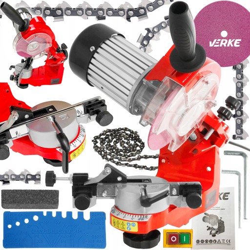 Ostrzałka do łańcuchów VERKE to mocne i niezawodne urządzenie przeznaczone do ostrzenia łańcuchów pił spalinowych i elektrycznych. Specjalna budowa ostrzałki umożliwia naostrzenie każdego zęba łańcucha w ten sam, powtarzalny sposób. Ostrzałka ta posiada wydajny silnik o mocy 230 W, tarczę o średnicy 145 mm oraz obracane imadło z regulowanym kątem ostrzenia, umożliwiające łatwe i skuteczne ostrzenie łańcuchów. Wyposażona dodatkowo w światło, co znacznie poprawi komfort oraz precyzję pracy.