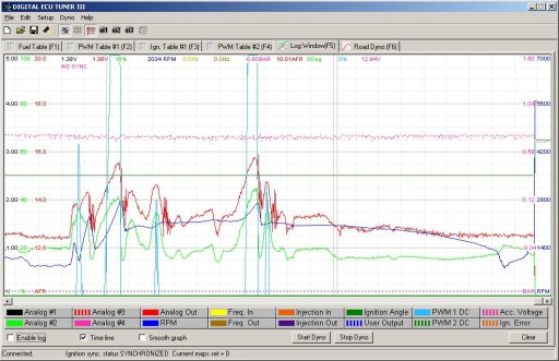 - możliwość kalibracji dowolnego czujnika analogowego, dzięki czemu wartości analogowe mogą być wyświetlane w ich realnych wartościach (np. sygnał z MAP sensora w barach, sygnał z sondy szerokopasmowej jako AFR, etc.),