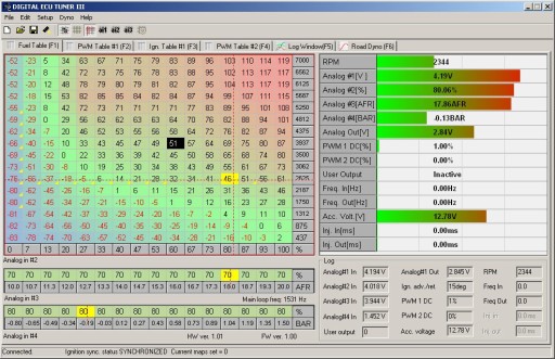 - 4 niezależne mapy 16x16 (mapa paliwa, dwie mapy PWM, mapa zapłonu),