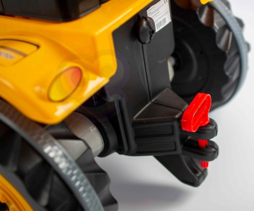 Ogromny traktor na pedały spychacz w kolorze żółtym to idealna zabawka do rozpoczęcia przygody z pojazdami na pedały.