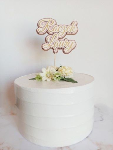 Piękna ozdoba tortu w kolorze złotym, pudrowym różu i kraftowym brązie. Zaprojektowana i wykonana ręcznie w Polsce, przez Polską małą firmę.