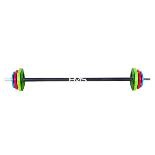 SBP20 HMS - sztanga do body pump to idealne rozwiązanie na trening grupowy oraz indywidualny. Zestaw składa się z gryfu, 3 par talerzy o różnym obciążeniu oraz zacisków motylkowych.