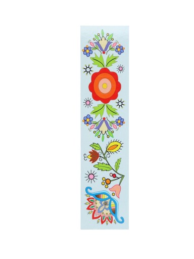 Folkowa zakładka do książki z wzorami inspirowanymi haftem kaszubskim (szkoła wdzydzka).