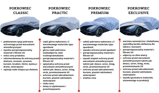 Doskonale chroni samochód przed deszczem, śniegiem, mrozem i szronem, zabrudzeniami, promieniami UV, ptasimi odchodami czy też zwierzętami, które wchodzą na pojazd.
