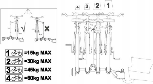 - Maksymalna liczba rowerów: 4