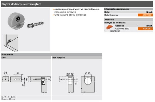 Szablon służący do dokładnego wiercenia otworów pod system do łączenia korpusów (mimośrodów) firmy Blum - 42.0700.01