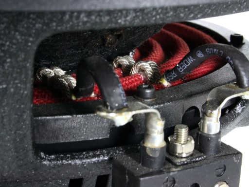 - Podwójne, trwałe i elastyczne linki przewodów zasilających cewkę, każda o przekroju 4 mm2, przymocowane do dolnego zawieszenia.