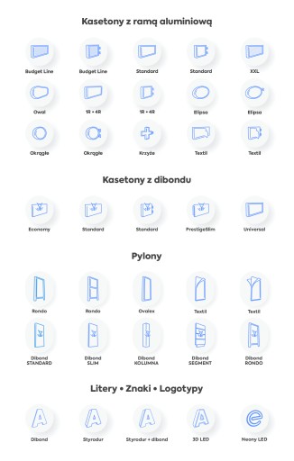 - W siedzibie naszej firmy posiadamy ekspozycję ze wszystkimi rodzajami kasetonów i liter z naszej oferty