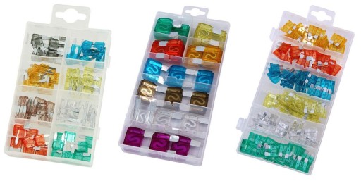 Zestaw zawiera po 3 szt. bezpieczników: 20A, 30A, 40A, 50A, 60A, 70A, 80A, 100A.