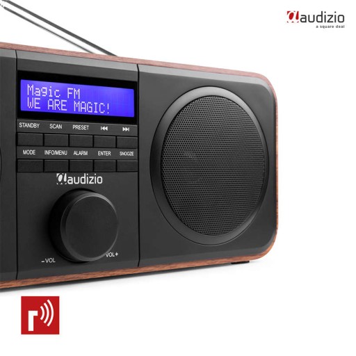 Oprócz DAB+ radio wyposażone jest również w odbiornik radiowy FM.