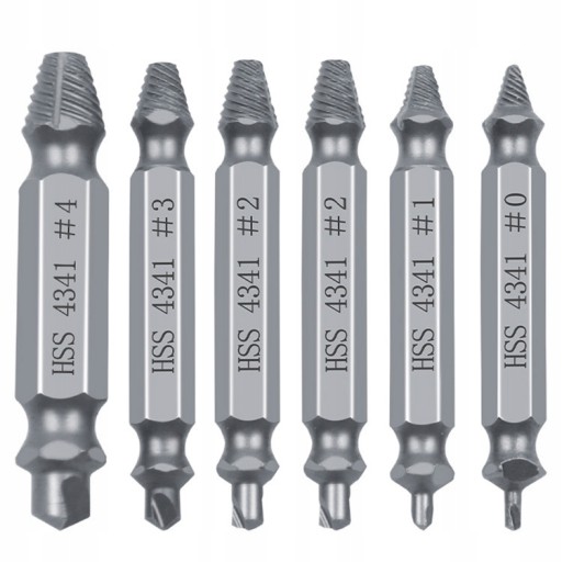НАБОР ЭКСТРАКТОРОВ ДЛЯ СЛОМАННЫХ ВИНТОВ И ВИНТОВ 6 шт. СТАЛЬ