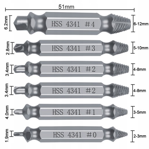 ZESTAW 6szt WYKRĘTAKÓW DO ZERWANYCH ŚRUB